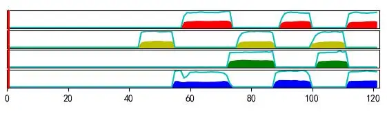 3D-диаграмма интенсивности показывает интенсивность в каждом положении лап в реальном времени.