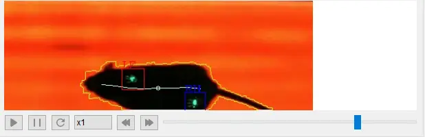 После классификации следов на отпечатке в прямоугольнике другого цвета будет нарисована белая кривая, обозначающая форму тела мыши.