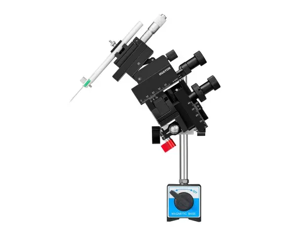 На основе вышеупомянутых микроманипуляторов M3 на ось X2 добавлена регулировка угла наклона от 0 до 50°.