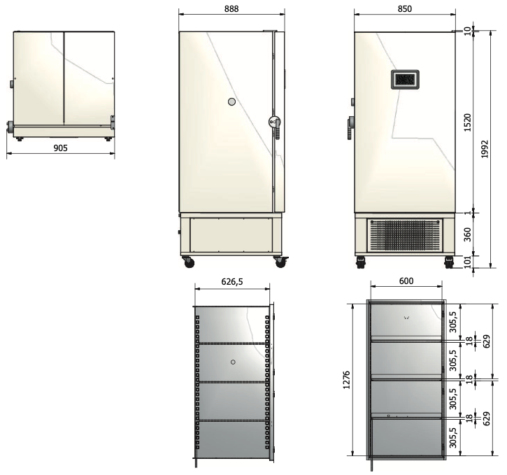 | Внутренние размеры | 600 x 626,5/592 x 1276 мм |