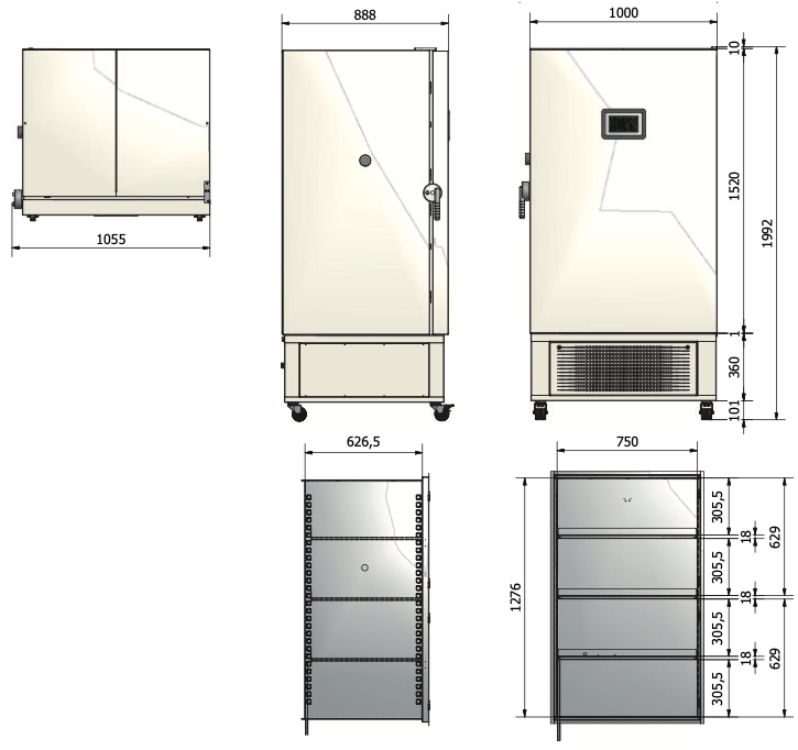 | Внутренние размеры | 750 x 626,5/592 x 1276 мм |