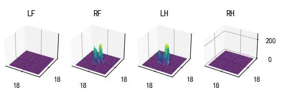 3D-диаграмма интенсивности показывает интенсивность в каждом положении лап в реальном времени.