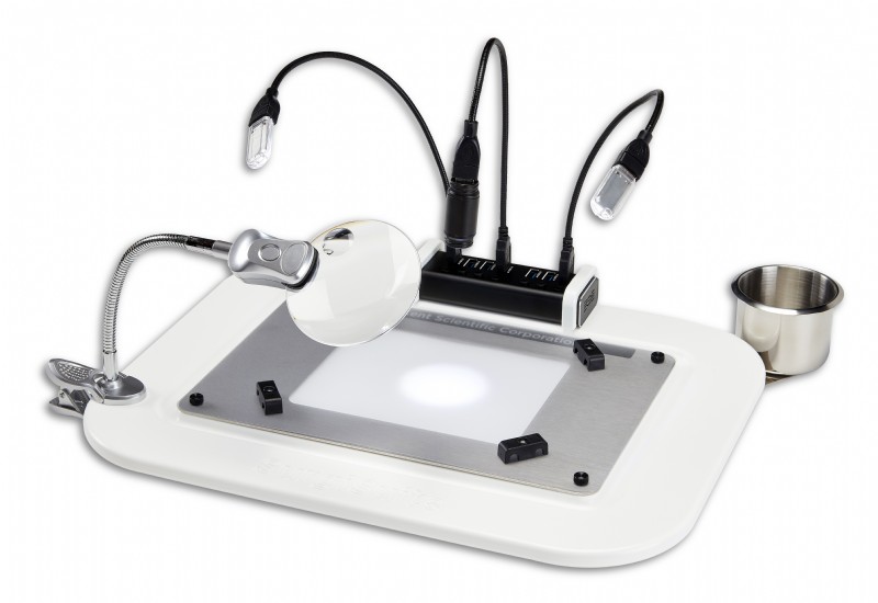 - Наш дополнительный комплект светодиодного освещения и увеличения включает в себя 3 гибких светодиодных светильника, клипсу-лупу и USB-удлинитель. Освещение подключается непосредственно к удлинители USB (USB-удлинитель должен быть подключен к розетке). Вы можете подключить до 7 USB-устройств, каждое из которых имеет свой собственный переключатель включения/выключения.