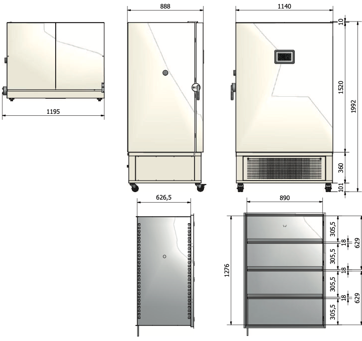 | Внутренние размеры | 890 x 626,5/592 x 1276 мм |