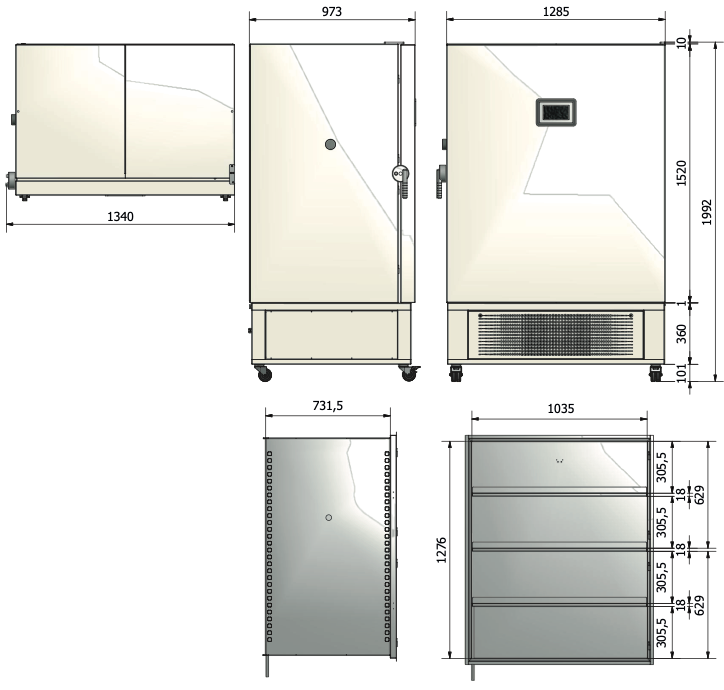 | Внутренние размеры | 1035 x 731,5/705 x 1276 мм |